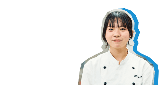 私がOHTAKEに入学したのは、近所にOHTAKE生の先輩がいて、調理のことを楽しそうに話してくれたのがきっかけでした。料理を作るのが好きだったので、中学とは違う進路に進んでみたいと思い入学を決めました。3年間を通してたくさんの実習があるので、調理だけでなく、製パンやカフェドリンク、バーテンダー実習など、幅広い分野を体験できます。おかげで家でも作れる料理が増え、料理の楽しさを改めて実感しています。 特に好きな授業は製パンと和菓子の実習です。どちらも入学前はあまり作ったことがなかったのですが、実習を重ねるうちにどんどん魅力にハマりました。先生の教え方もとても丁寧で、毎回の授業が楽しみです。
